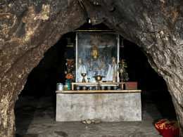 The walk to the temple begins in the village of Sopsokha and meanders through picturesque fields and traditional farmhouses. Along the way, visitors pass vibrant wall murals of flying phalluses, meant to ward off evil spirits and bring good fortune. It’s a short, scenic 20-minute walk that feels both light-hearted and sacred.